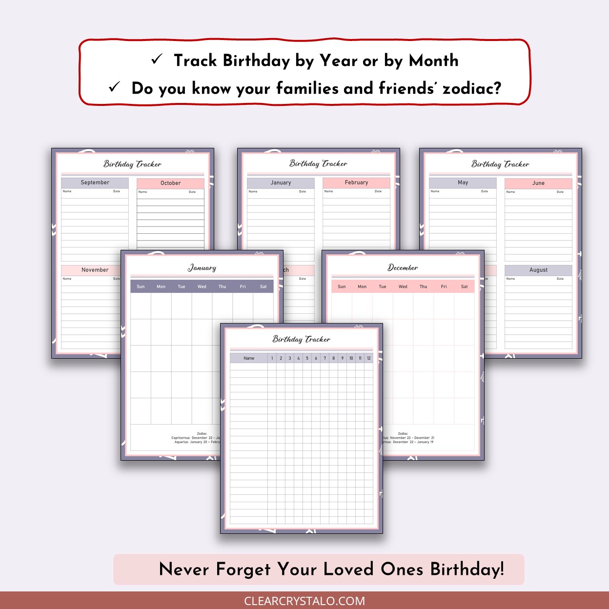 The planner is designed to be reused over and over again for tracking, budgeting, and planning birthday parties, brainstorming gift ideas, and a keepsake of birthday memories. It is fun to know your friends and families' zodiacs, do check out their personalities from the zodiac signs!
